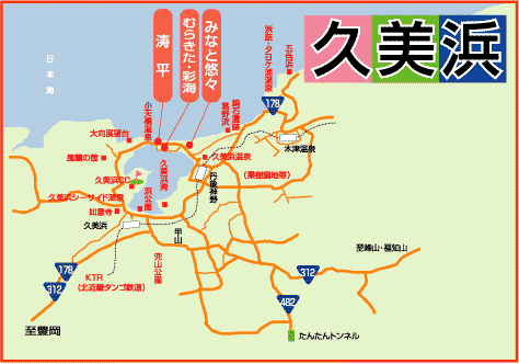 また、温泉地も有名で久美の浜温泉郷、小天橋温泉と旅のぜいたくをすべて味わうことができる。