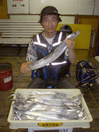 | ▲55〜100aのタチウオを43匹も釣り上げた鈴木恵二さん |